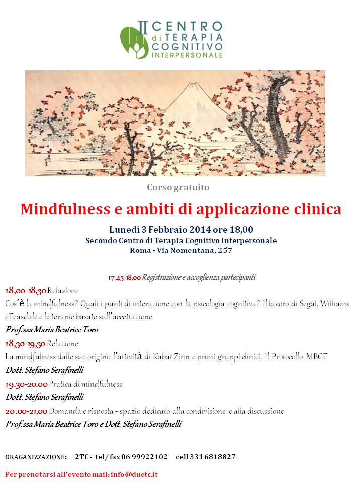 Mindfulness e ambiti di applicazione clinica – seconda edizione 3 febbraio ore 18,00